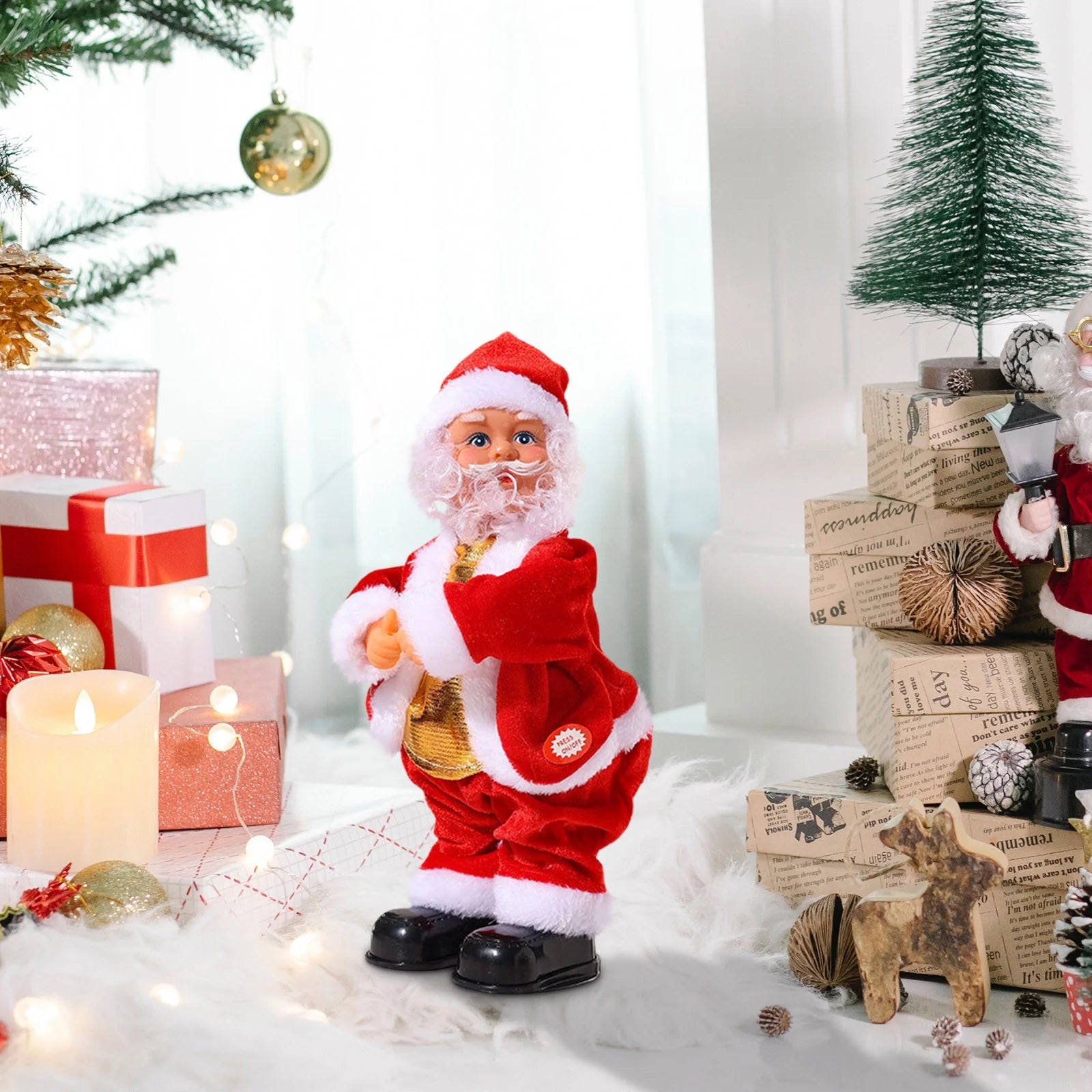 Bring joyful holiday energy into your home with this Christmas Electric Santa Claus! This adorable Santa doesn’t just stand still—he shakes his hips, plays the guitar, and dances along to cheerful Christmas music. A perfect blend of fun, charm, and festive spirit, this twerking Santa is guaranteed to make anyone smile.