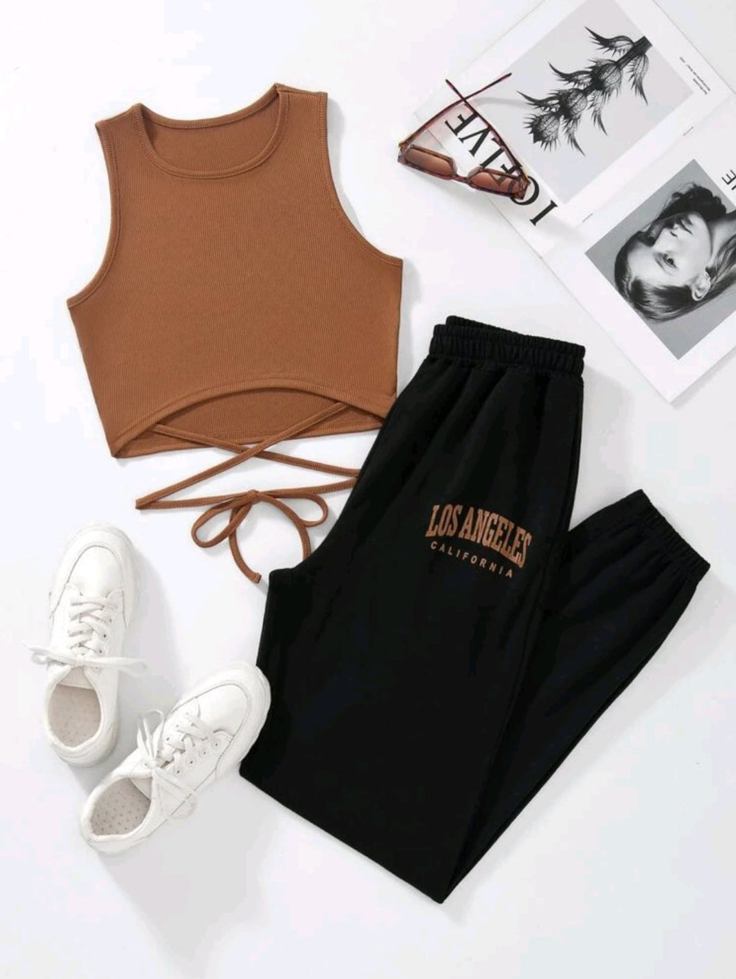 Crisscross Tie Back Tank Top & Letter Graphic Sweatpants