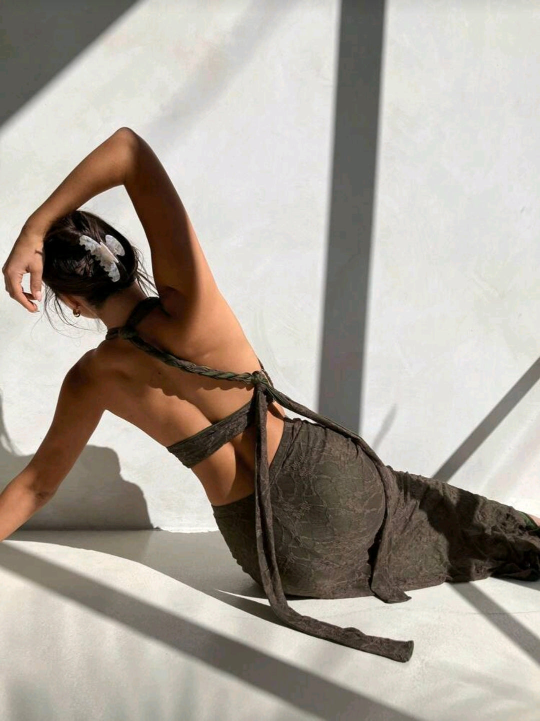 Floral Lace Backless Crop Top & Fish Tail Skirt Two Pieces